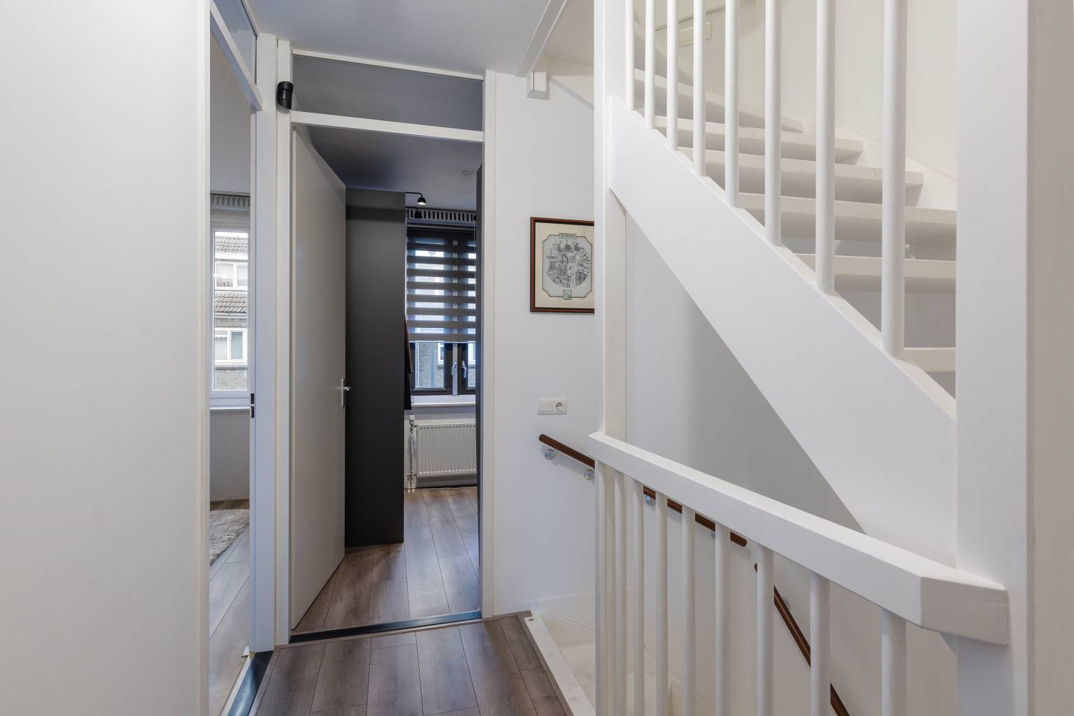 Zodra je de straat inloopt, voel je het al. Hier woon je met alles dichtbij! Deze fijne tussenwoning ligt op een paar stappen van de levendige binnenstad, met winkels, terrassen en horeca binnen handbereik, terwijl scholen en het openbaar vervoer praktisch om de hoek te vinden zijn. Een ideale plek voor wie centraal wil wonen zonder in te leveren op comfort en sfeer. Binnen valt direct de strakke afwerking op. De begane grond is voorzien van een fraaie PVC-visgraatvloer met comfortabele vloerverwarming, strak gestuukte wanden en een lichte, uitnodigende woonkamer waar de openslaande deuren zorgen voor een prettige verbinding met de onderhoudsvriendelijke achtertuin. De open keuken sluit hier perfect op aan en is een echte eyecatcher, met onder andere een Quooker, een Smeg gasfornuis met oven en volop werk- en bergruimte. Een plek waar koken en samenzijn moeiteloos samengaan. Achterin de tuin vind je een berging met elektra en verlichting en via de achteruitgang loop je zo naar het mandelige terrein met de eigen parkeerplaats. Op de eerste verdieping bevinden zich drie goed ingedeelde slaapkamers en een nette badkamer met daglicht en zowel natuurlijke als mechanische ventilatie. De tweede verdieping verrast met een ruime vierde slaapkamer, dankzij de dakkapel over de volle breedte van de woning, compleet met extra bergruimte achter de knieschotten en een karaktervolle houten balk. Daarnaast is hier een praktische wasruimte en een aparte technische ruimte gerealiseerd. Met onder andere zes zonnepanelen, energielabel A, nieuwe vloeren, grotendeels gestuukte wanden en een bouwjaar van 2008 is dit een instapklare woning waar comfort, duurzaamheid en een fijne ligging perfect samenkomen.