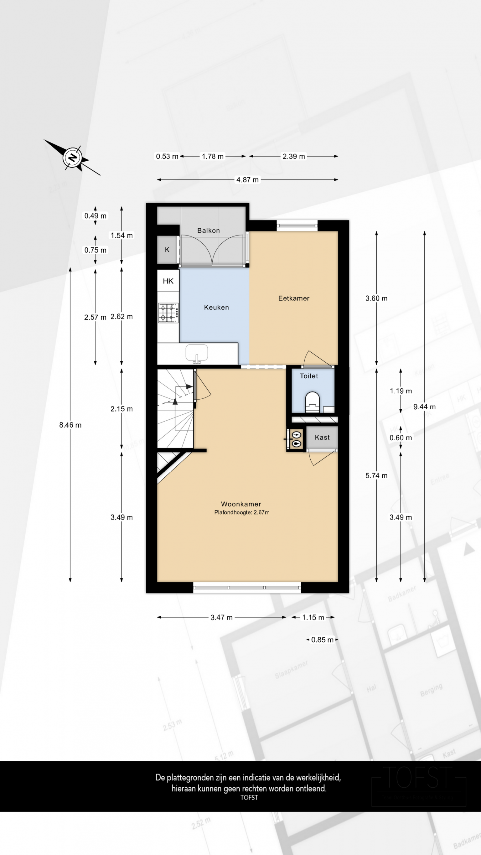 De Meetinstructie is gebaseerd op de NEN2580. De Meetinstructie is bedoeld om een meer eenduidige manier van meten toe te passen voor het geven van een indicatie van de gebruiksoppervlakte. De Meetinstructie sluit verschillen in meetuitkomsten niet volledig uit, door bijvoorbeeld interpretatieverschillen, afrondingen of beperkingen bij het uitvoeren van de meting. Indien de exacte maten voor een koper van cruciaal belang zijn, adviseren wij deze zelf na te meten. De (kandidaat)koper(s) zullen, indien gewenst, daartoe in de gelegenheid gesteld worden op een passend moment teneinde teleurstellingen en schade te voorkomen.