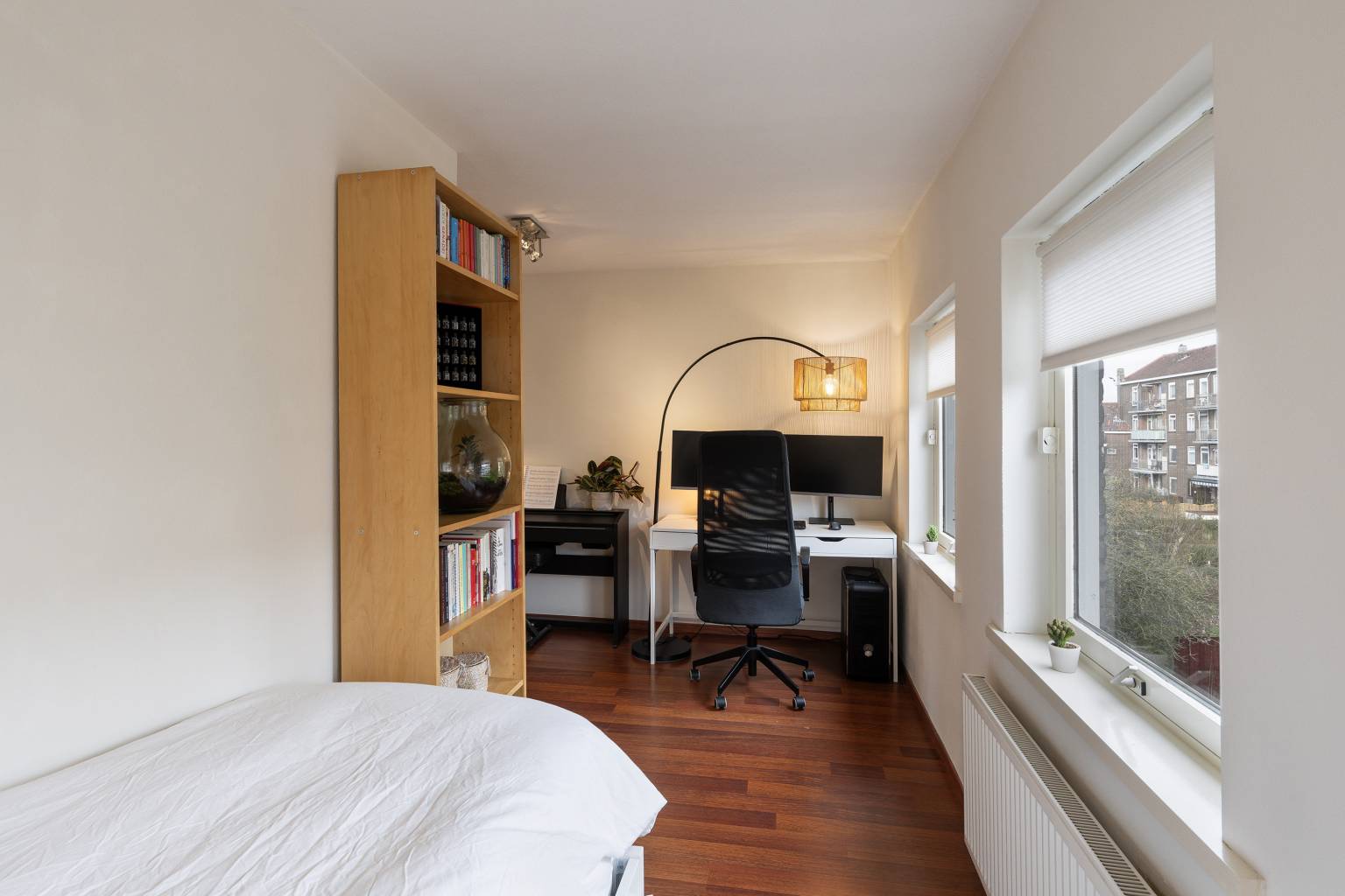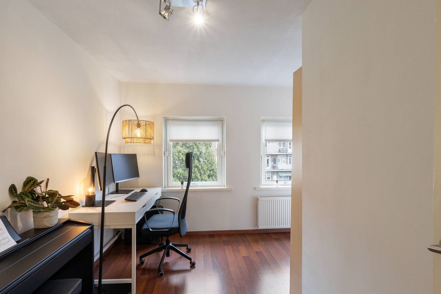 Binnen valt meteen op hoe licht en prettig de woning aanvoelt. De ruime woonkamer aan de voorzijde kijkt vrij weg over de straat en heeft een karaktervolle schouw en een vaste kast, terwijl aan de achterzijde de eetkamer met open keuken ligt. De keuken is praktisch ingedeeld, voorzien van diverse apparatuur en grenst via openslaande deuren aan een beschut, overdekt balkon waar je het hele jaar door een fijne buitenplek hebt. Op de tweede verdieping zijn drie slaapkamers aanwezig, ideaal voor een gezin, thuiswerken of logés, en de complete badkamer met ligbad én douche maakt het geheel extra comfortabel. De zolder vormt een volwaardige extra verdieping met daglicht, veel bergruimte, knieschotten en aansluitingen voor de wasmachine, perfect als royale opslag. De woning is strak afgewerkt met gestuukte wanden, laminaatvloeren en paneeldeuren, beschikt over houten kozijnen met dubbel glas en biedt verrassend veel opbergmogelijkheden, inclusief een externe berging. Een fijne, ruime bovenwoning met zolder, gelegen in een prettige buurt waar wonen echt prettig samenkomt.