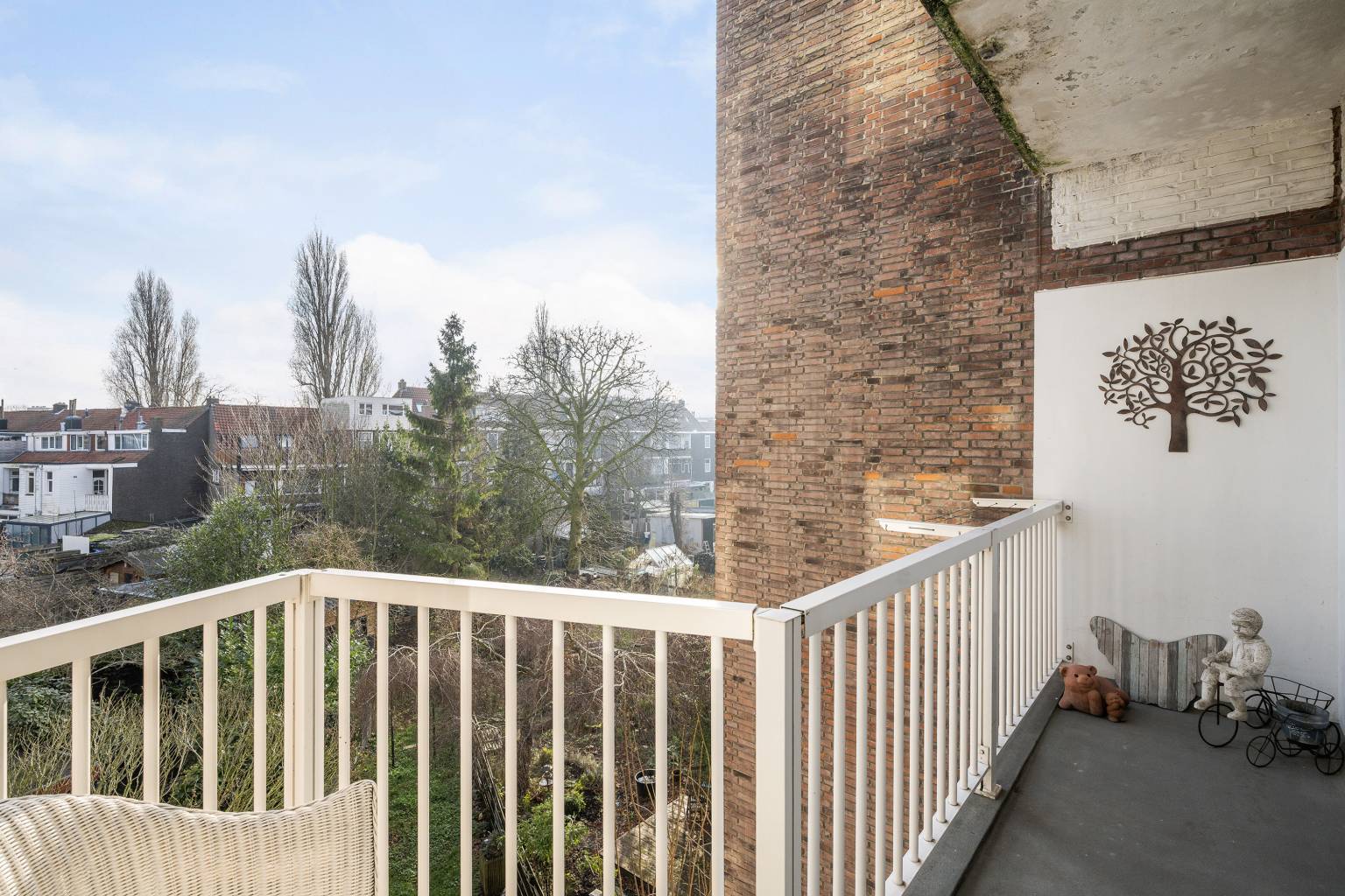 Het overdekte balkon is een fijne buitenruimte met plaats voor een gezellige zitje.