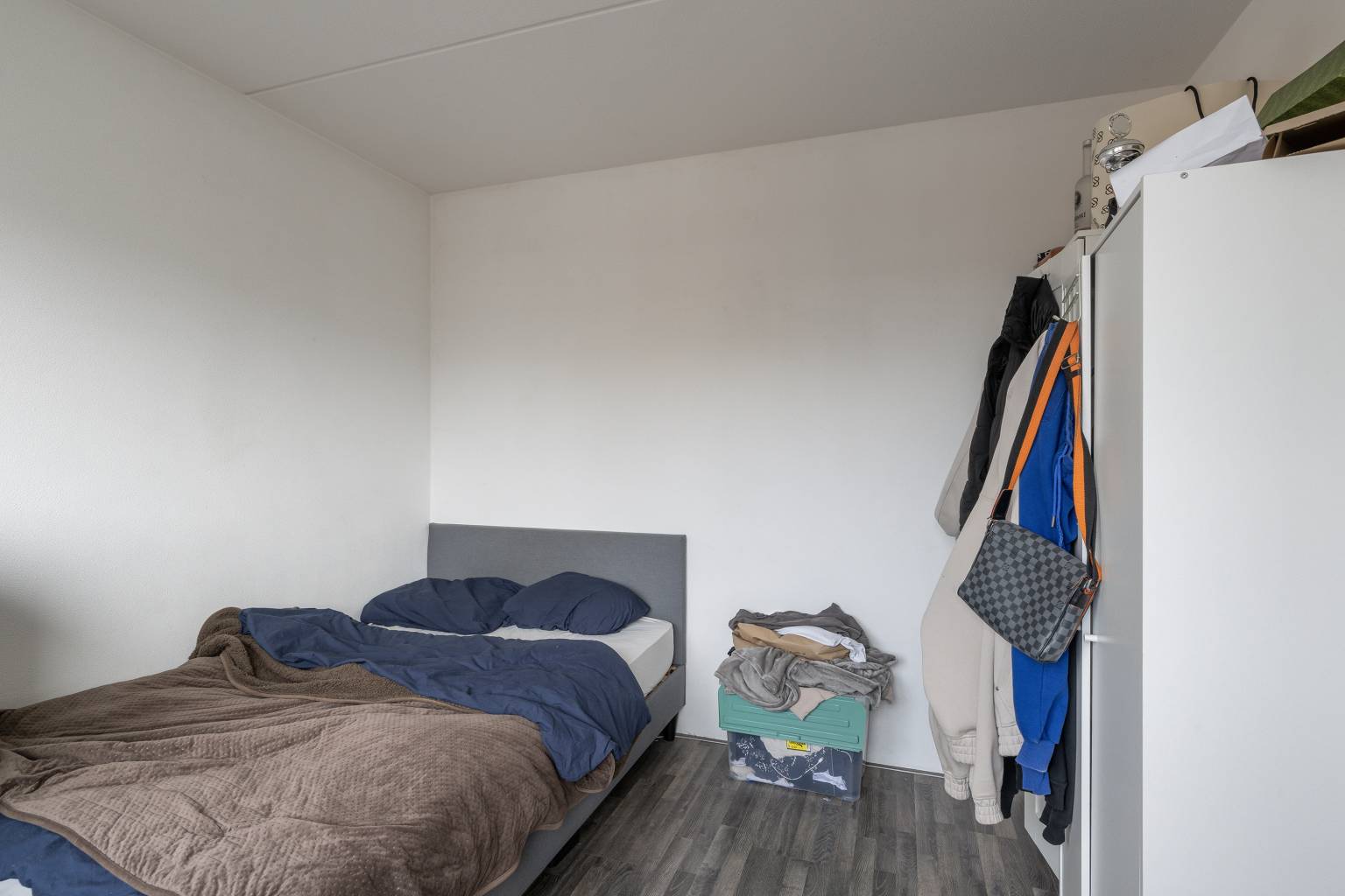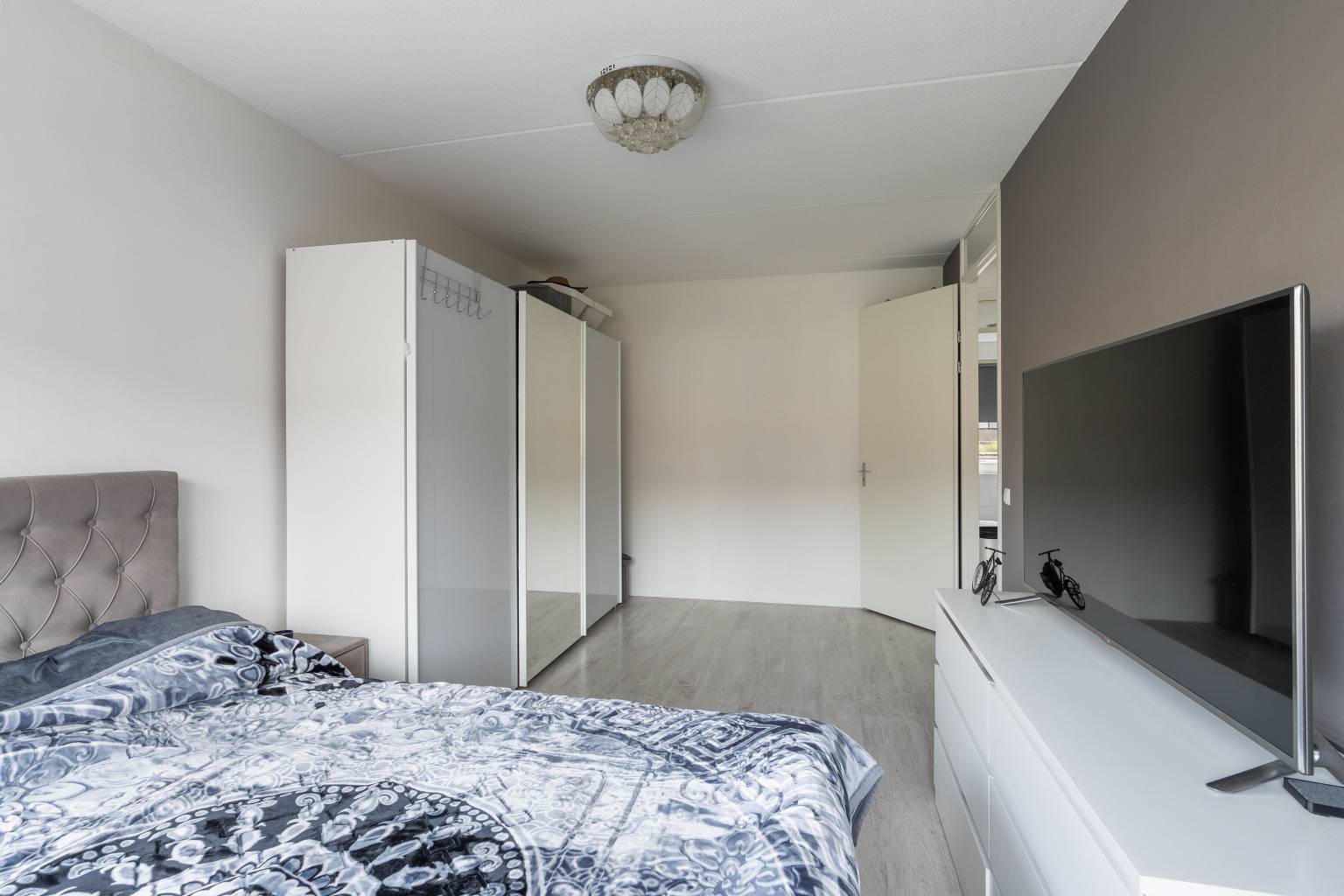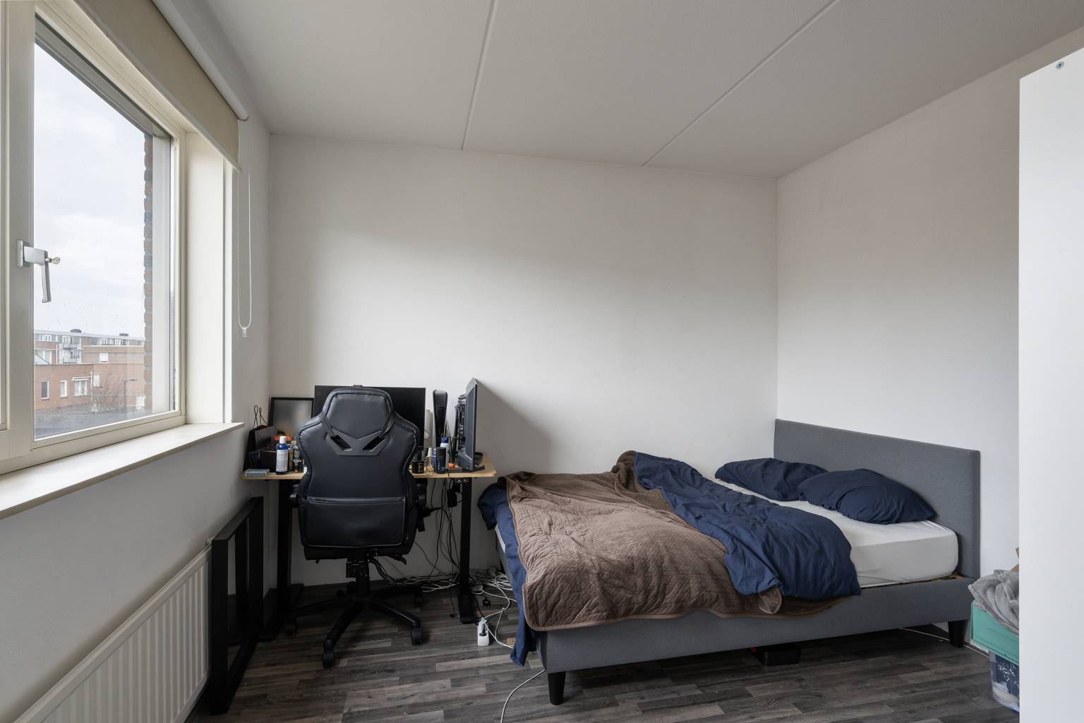 De slaapkamers zijn verdeeld gelegen, waarbij er twee kamers zijn voorzien van een extra zijraam en alle wanden wisselend zijn afgewerkt met spachtelputz en behang.