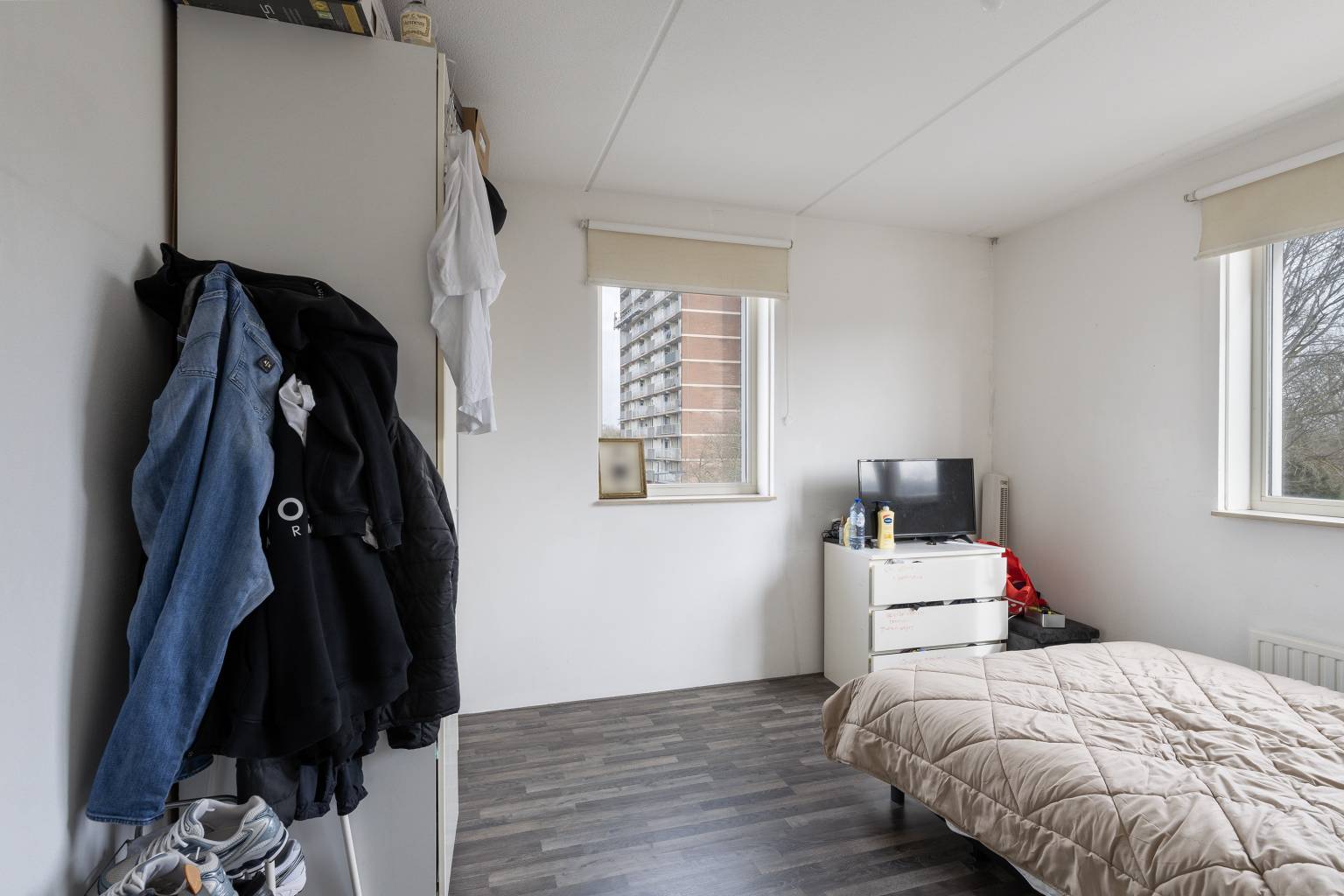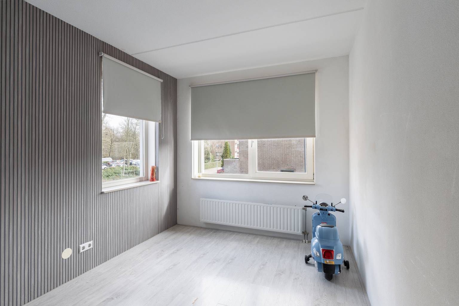 Ook deze kamers zijn verdeeld gelegen over de voor- en achterzijde en zijn beide voorzien van een laminaatvloer en spachtelputz wanden.