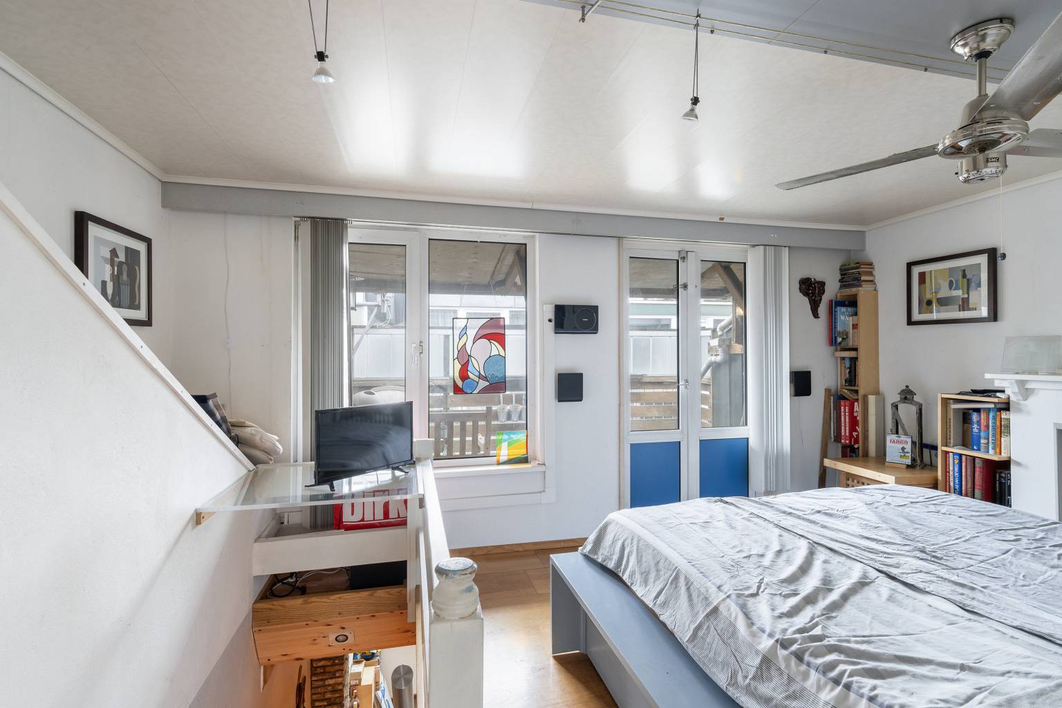 De kamer aan de voorzijde is voorzien van twee vaste kasten en een houten vloer. De grote dakkapel is voorzien van inbouw spots en vanuit hier is er toegang tot de badkamer.