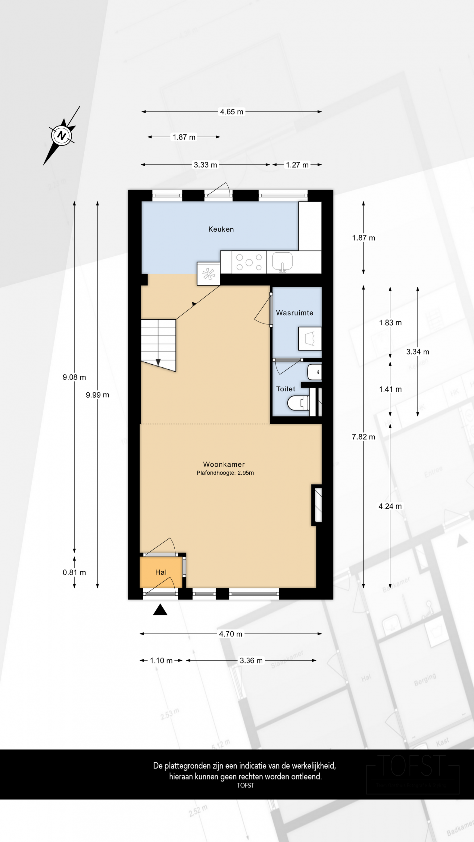De Meetinstructie is gebaseerd op de NEN2580. De Meetinstructie is bedoeld om een meer eenduidige manier van meten toe te passen voor het geven van een indicatie van de gebruiksoppervlakte. De Meetinstructie sluit verschillen in meetuitkomsten niet volledig uit, door bijvoorbeeld interpretatieverschillen, afrondingen of beperkingen bij het uitvoeren van de meting. Indien de exacte maten voor een koper van cruciaal belang zijn, adviseren wij deze zelf na te meten. De (kandidaat)koper(s) zullen, indien gewenst, daartoe in de gelegenheid gesteld worden op een passend moment teneinde teleurstellingen en schade te voorkomen.
