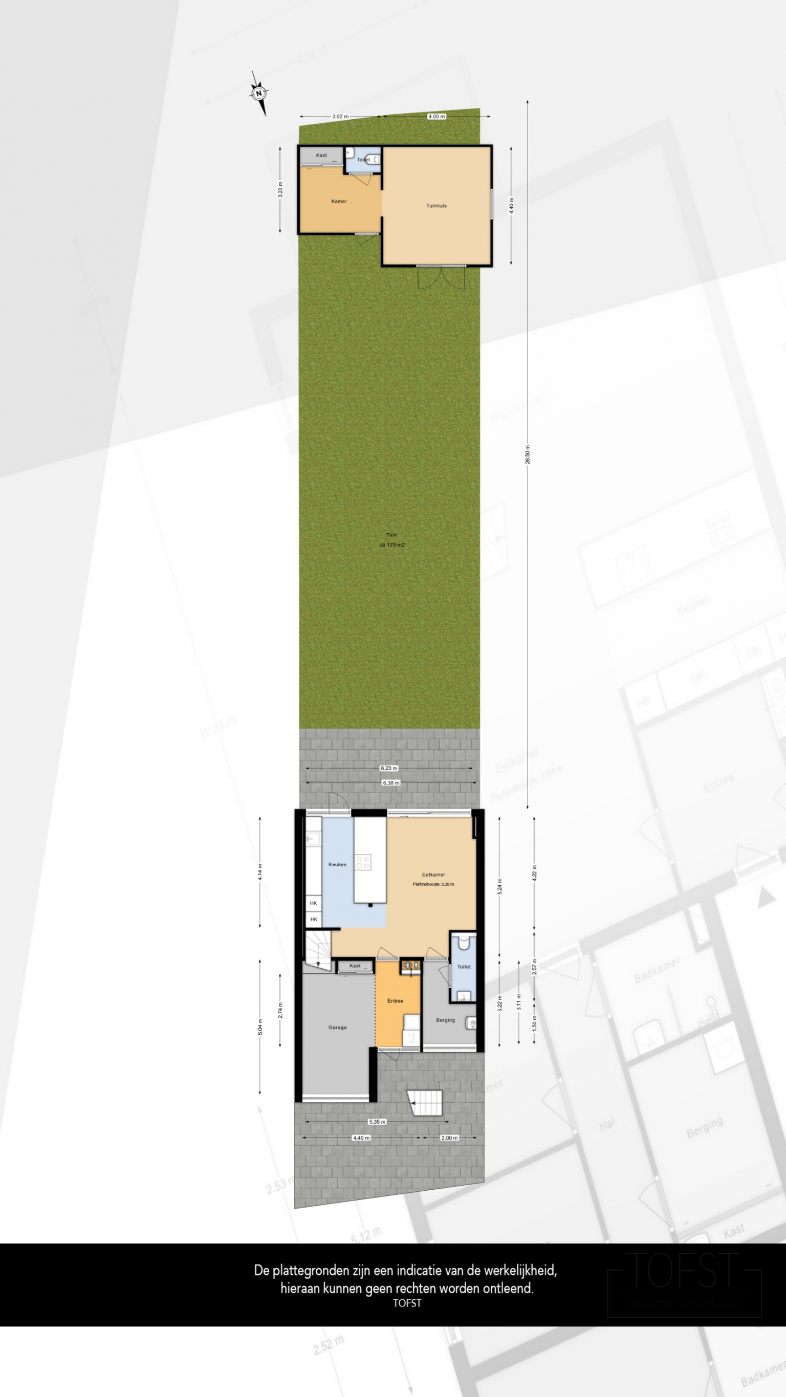 - 175 m² (26,50m Diep / 6,38m Breed)