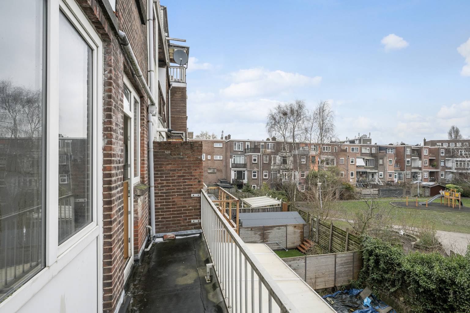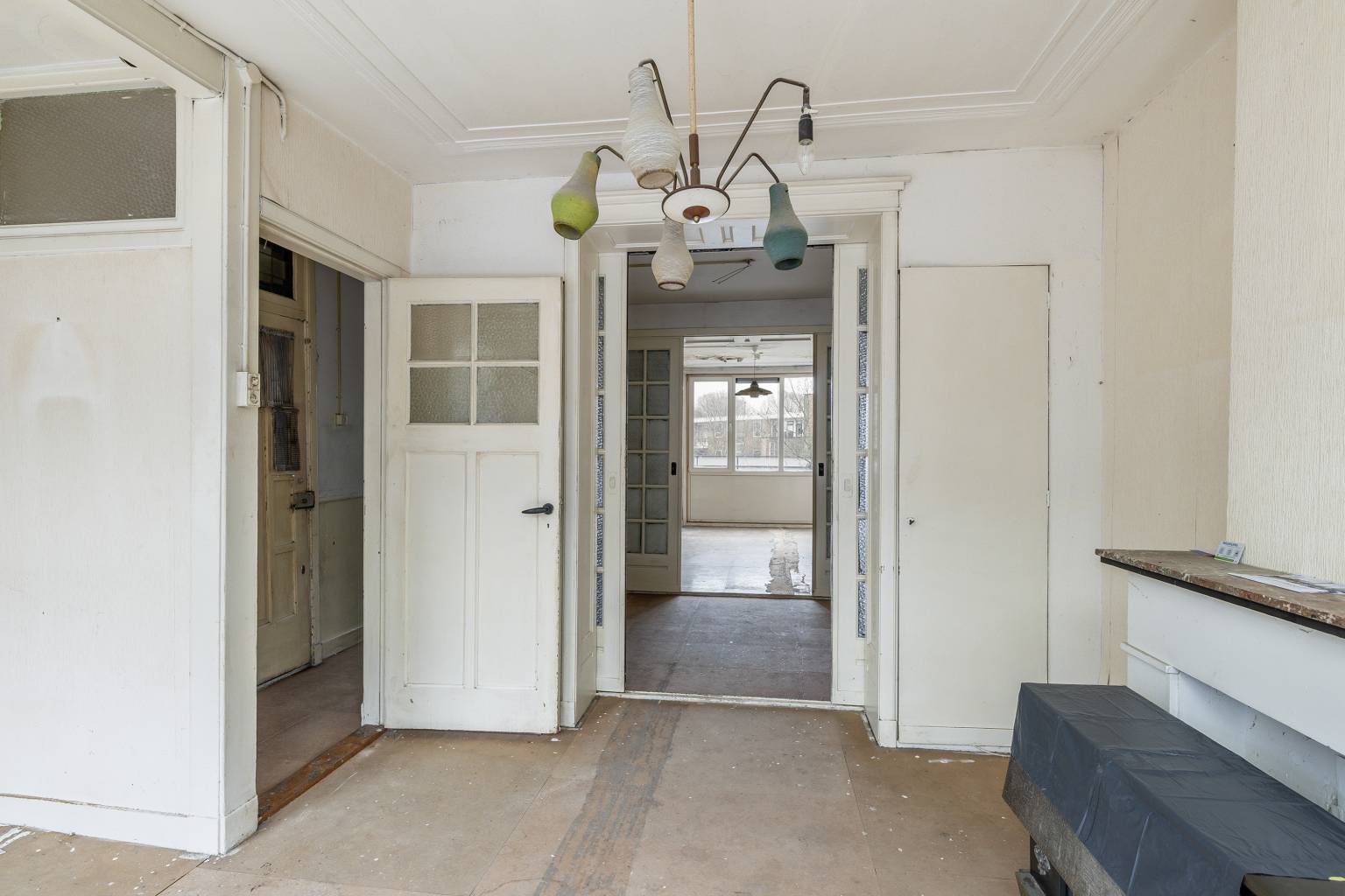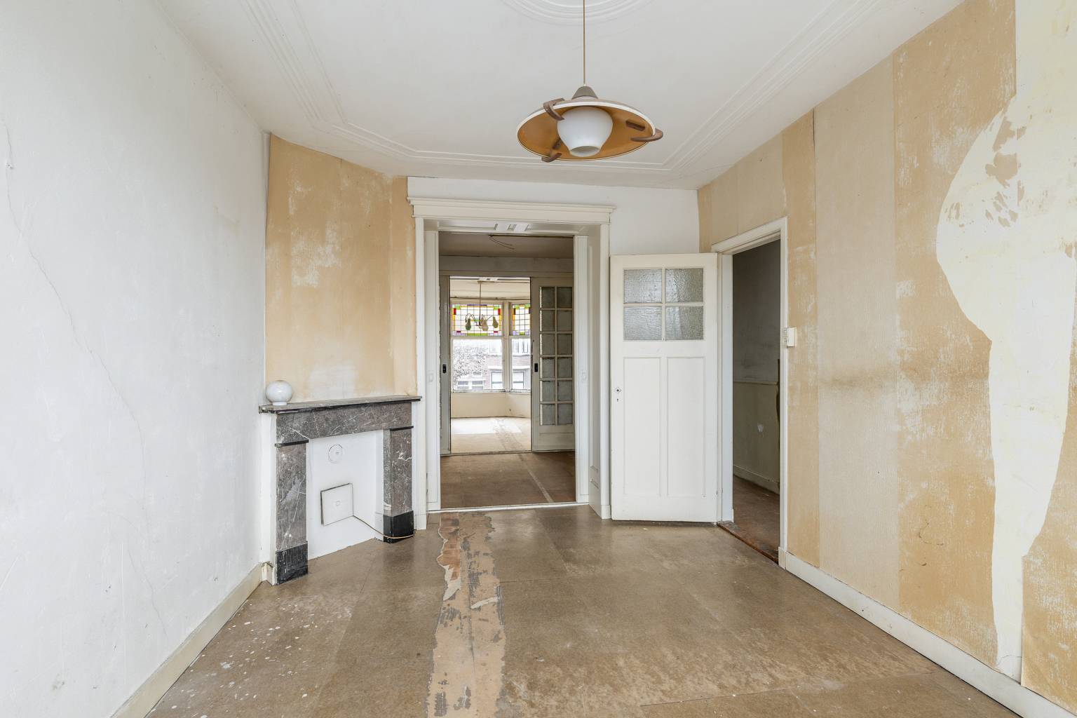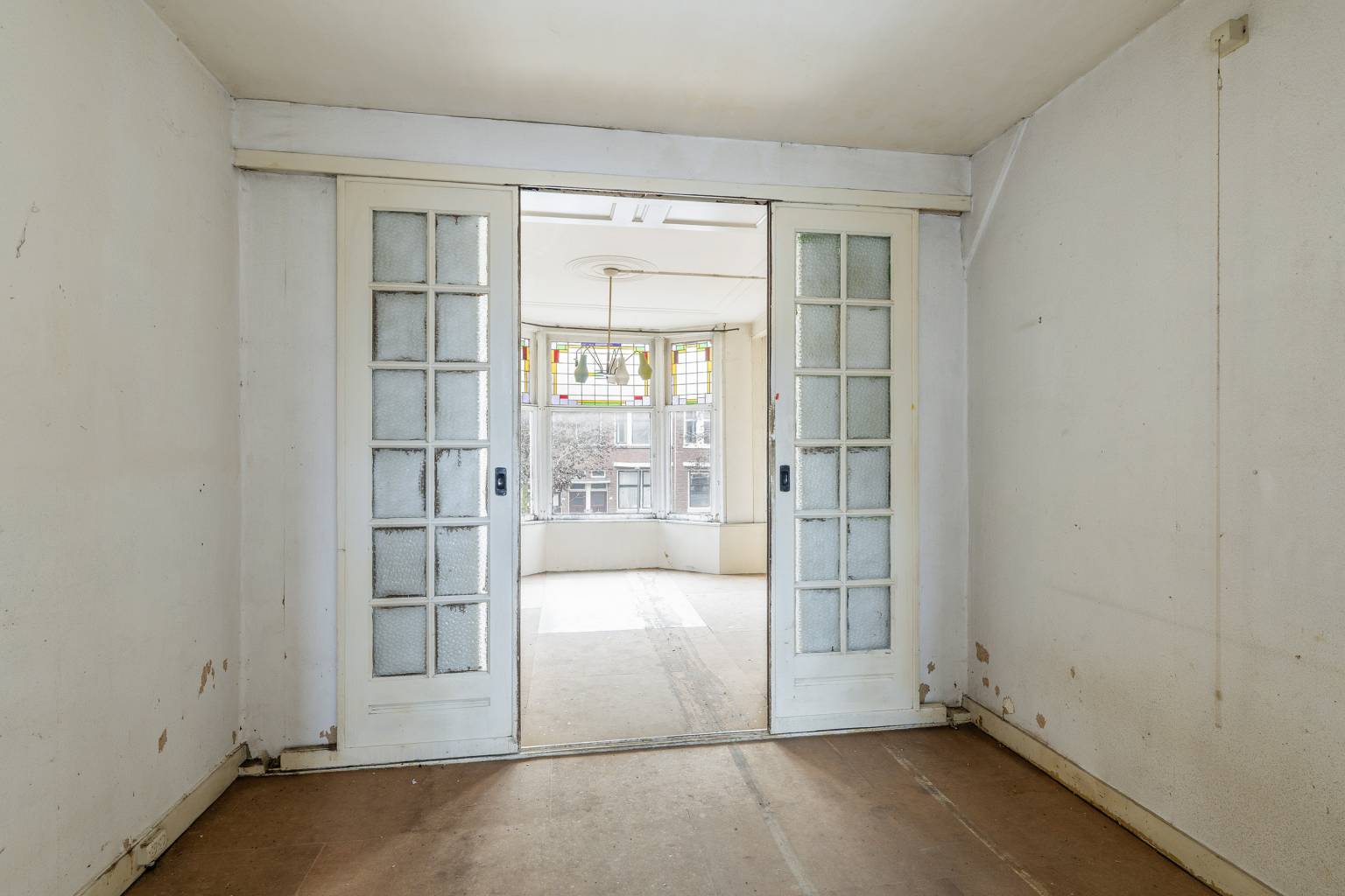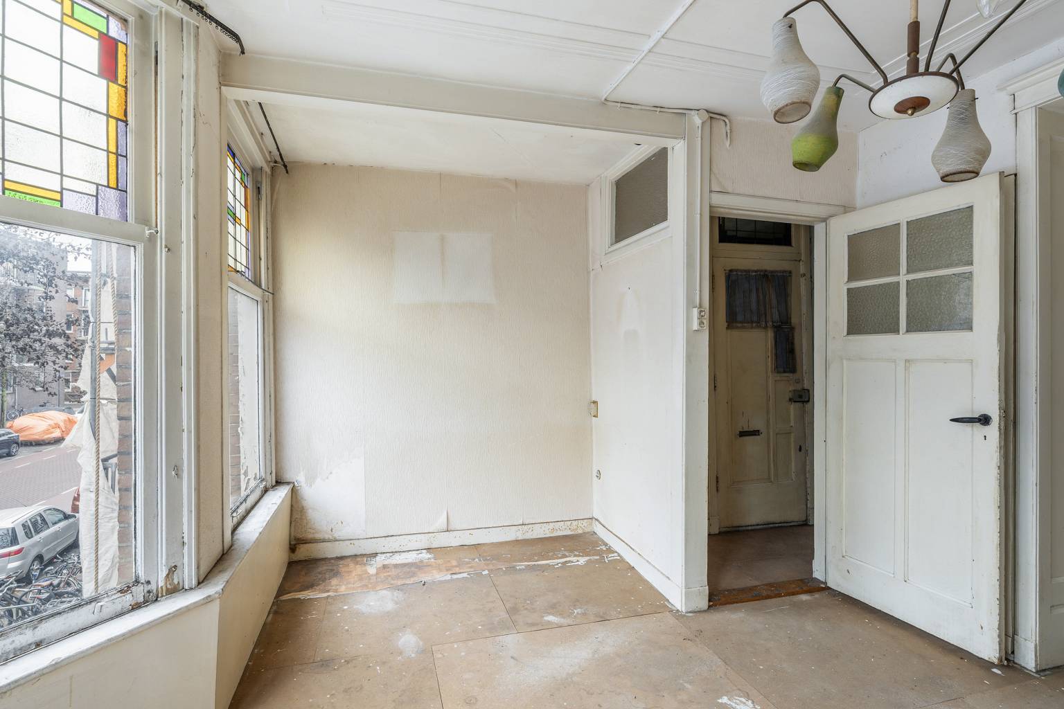 In een levendige en karaktervolle wijk van Schiedam ligt dit authentieke appartement op de eerste verdieping, een plek waar stadse dynamiek en charmante jaren ’30 architectuur samenkomen. Op loopafstand vind je diverse winkels, supermarkten en gezellige eetgelegenheden, terwijl ook het historische centrum, het openbaar vervoer en de uitvalswegen binnen handbereik zijn. Een ideale locatie voor wie graag alles dichtbij heeft en toch wil wonen in een omgeving met sfeer en historie. Via de open trapopgang bereik je de voordeur op de eerste verdieping. Achter de lange, smalle entreehal met meterkast en vaste kast ontvouwt zich een woning vol originele details die wachten om weer te stralen. De woonkamer aan de voorzijde wordt prachtig verlicht door de erker met glas-in-lood bovenlichten en ademt karakter dankzij de sierlijsten met ornamentenplafond, de schouw met moederhaard en de vaste kasten. De en-suite schuifdeuren verbinden de woonkamer met de tussenkamer, die op haar beurt weer via en-suite deuren toegang geeft tot de slaapkamer aan de achterzijde. Ook hier zorgen een originele schouw, vaste kast en een fraai gedecoreerd plafond voor die echte jaren ’30 beleving. Paneeldeuren versterken het authentieke karakter door het hele appartement. De keuken is praktisch ingedeeld met een recht keukenblok, bovenkast en geiser en staat in open verbinding met de douchehoek. Vanuit hier is er toegang tot het balkon aan de achterzijde, waar tevens kunststof kozijnen met dubbel glas zijn geplaatst. Dit appartement uit 1929 dient volledig gemoderniseerd te worden en heeft energielabel E, maar biedt juist daardoor een prachtige kans voor de handige klusser die droomt van het creëren van een eigen thuis vol karakter.