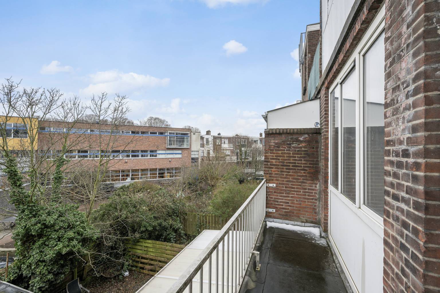 Via een open trapopgang met de brievenbussen is op de eerste verdieping de voordeur van het appartement bereikbaar.