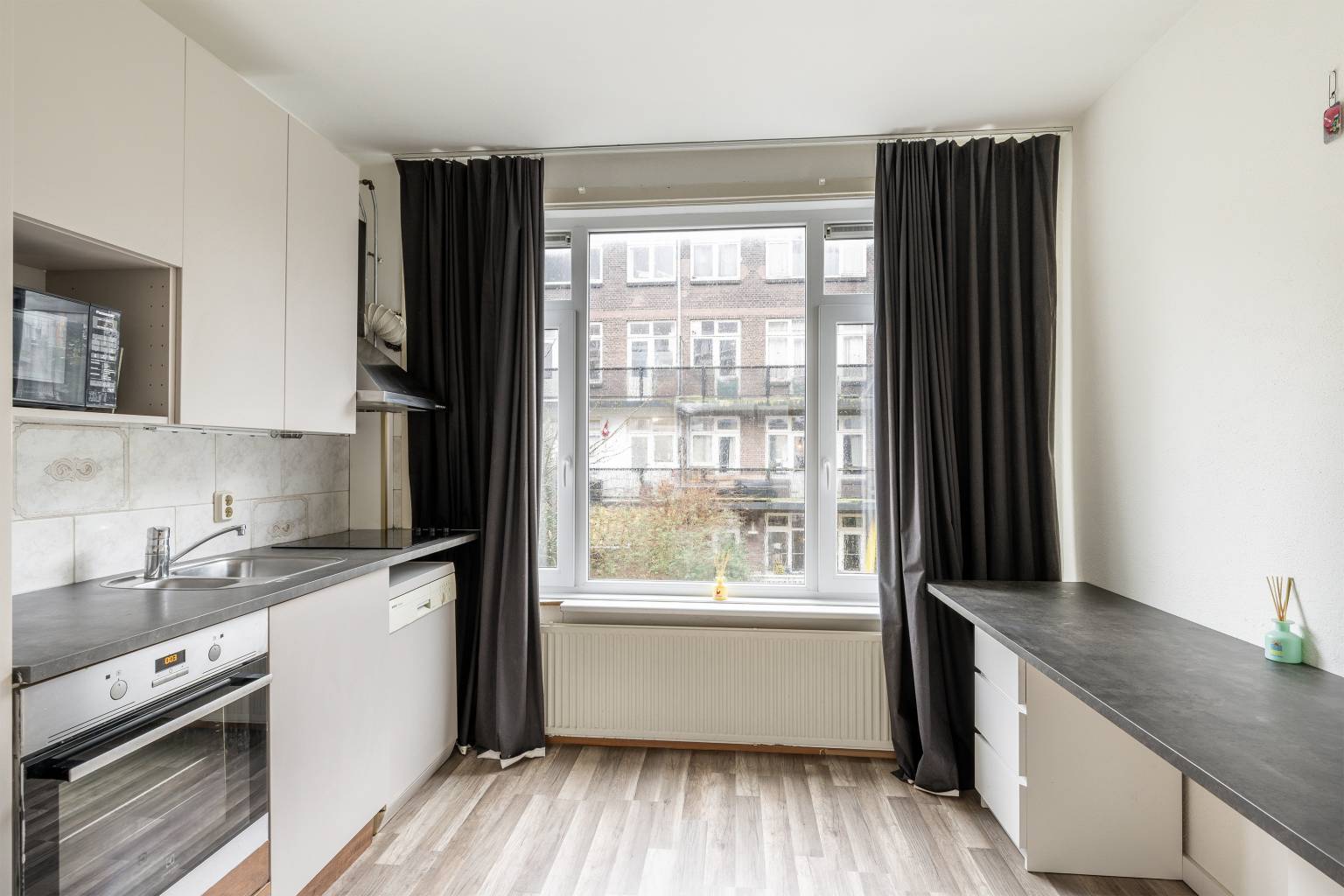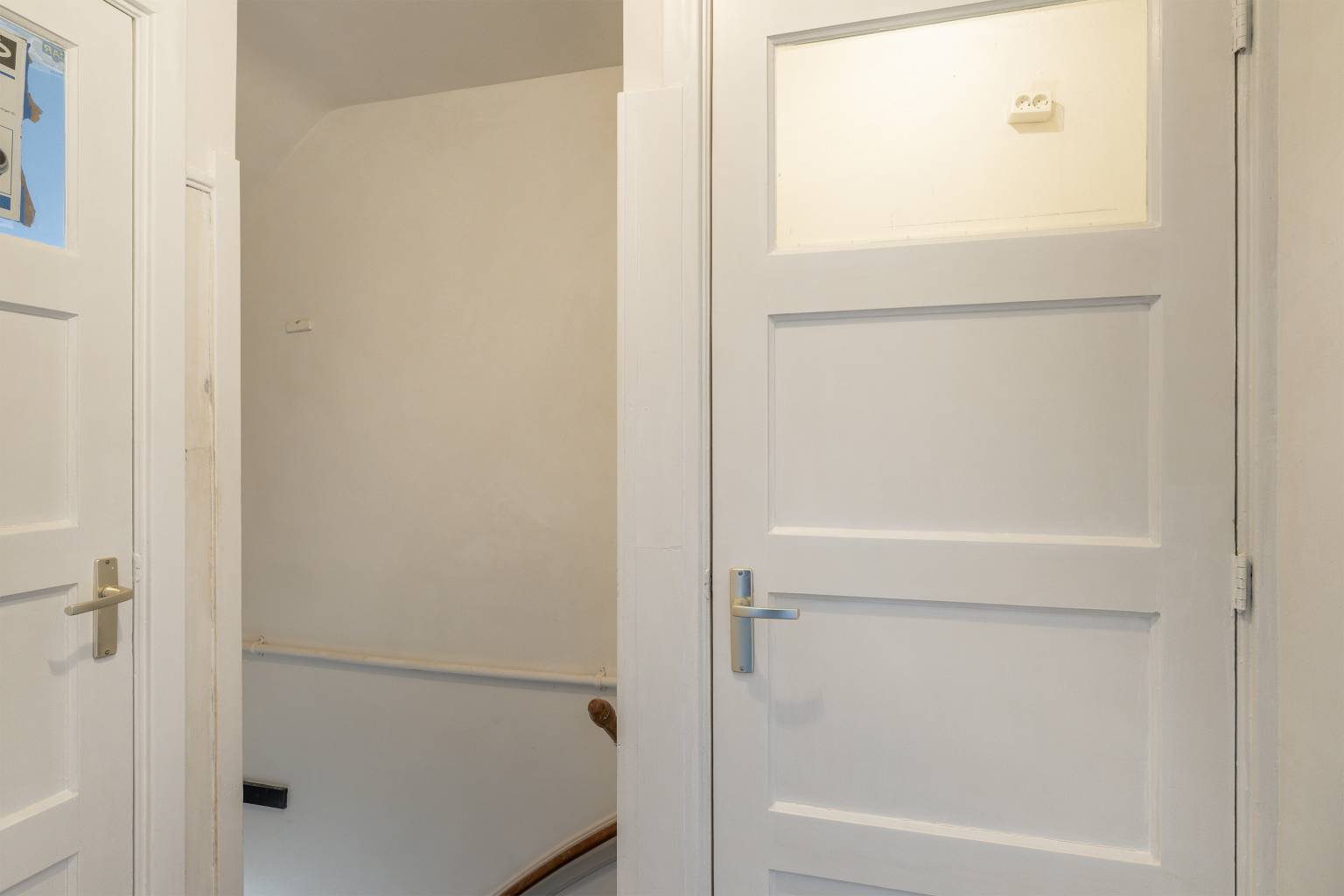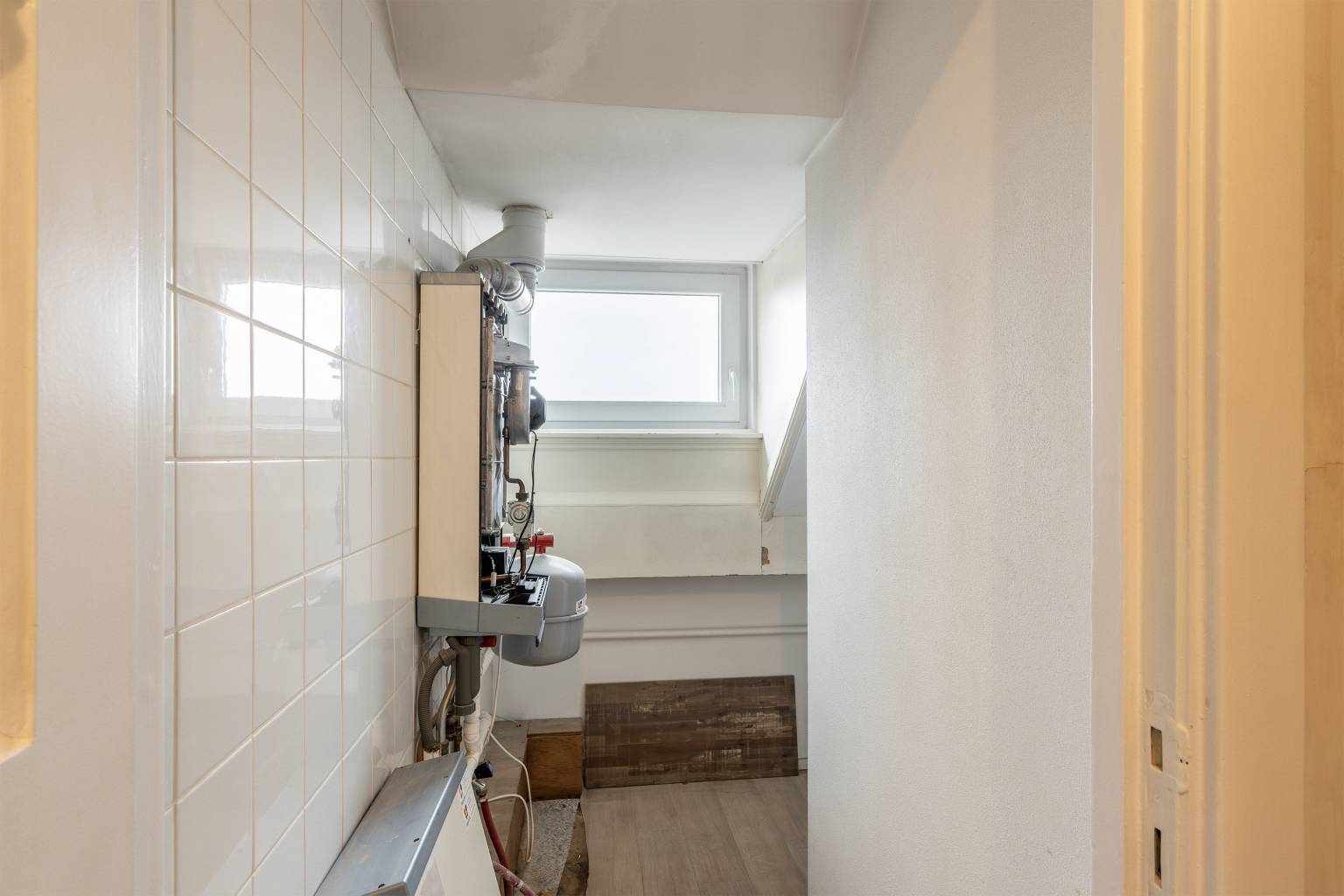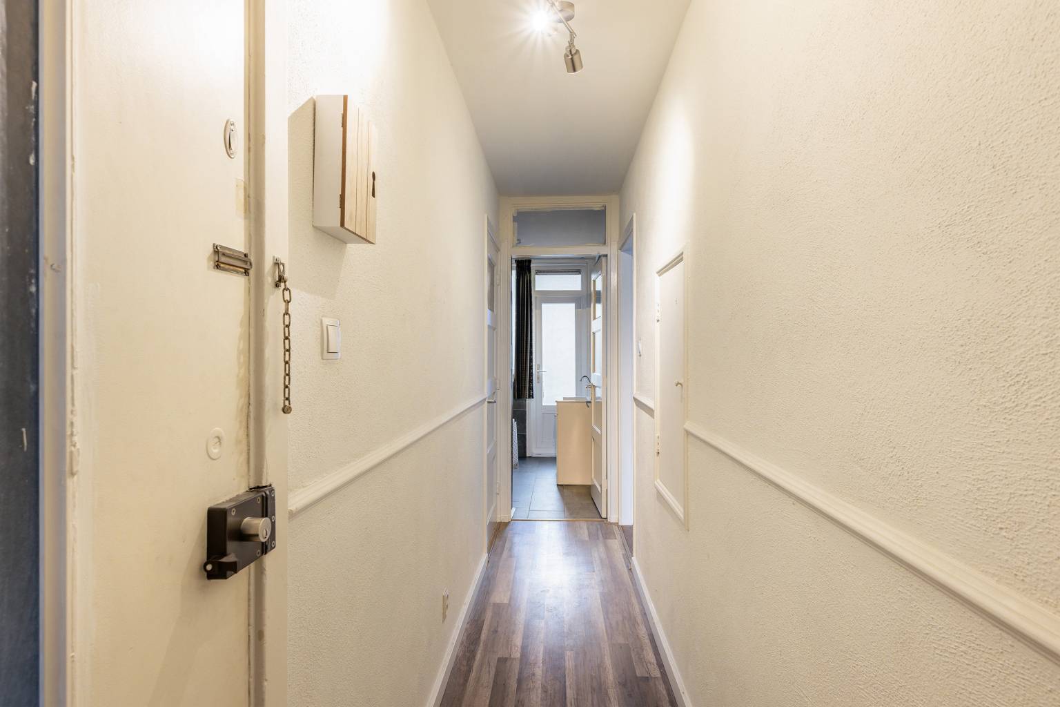 In een gezellige en levendige wijk in Schiedam ligt deze charmante dubbele bovenwoning uit 1938, een fijne plek voor wie centraal en toch rustig wil wonen. Hier woon je op korte afstand van winkels, supermarkten, het openbaar vervoer en de uitvalswegen, terwijl ook het historische centrum met zijn grachten, horeca en terrassen binnen handbereik is. Alles wat je dagelijks nodig hebt, ligt letterlijk om de hoek. Via de open trapopgang bereik je de woning op de eerste verdieping. Binnen valt direct de lichte afwerking op. Gesausde wanden, een laminaatvloer en karaktervolle paneeldeuren geven het geheel een prettige sfeer. De woonkamer aan de voorzijde staat via een toog in open verbinding met de keuken aan de achterzijde, wat zorgt voor een speelse en open indeling. Het plafond is afgewerkt met sierlijsten en ornamenten, wat een knipoog geeft naar de bouwperiode. De keuken is praktisch ingericht met een recht keukenblok, bovenkasten, diverse apparatuur en een extra werkblad aan de overzijde. Vanuit de badkamer, die is voorzien van een ligbad met douche, wastafelmeubel en handdoeken radiator, stap je zo het knusse balkon aan de achterzijde op. Op de derde verdieping bevindt zich de slaapkamer met vaste kast en een dakkapel, die gedeeld is met de berging, voor extra ruimte en licht zorgt. De overloop geeft daarnaast toegang tot een aparte wasruimte met wasmachineaansluiting en een praktische berging met opstelling van de cv-ketel. Dankzij de vele opbergmogelijkheden is er verrassend veel ruimte aanwezig. De woning is volledig voorzien van kunststof kozijnen met dubbel glas en heeft energielabel D. Doordat de woning leeg staat, is een snelle oplevering mogelijk, waardoor je hier op korte termijn jouw eigen plek van kunt maken.