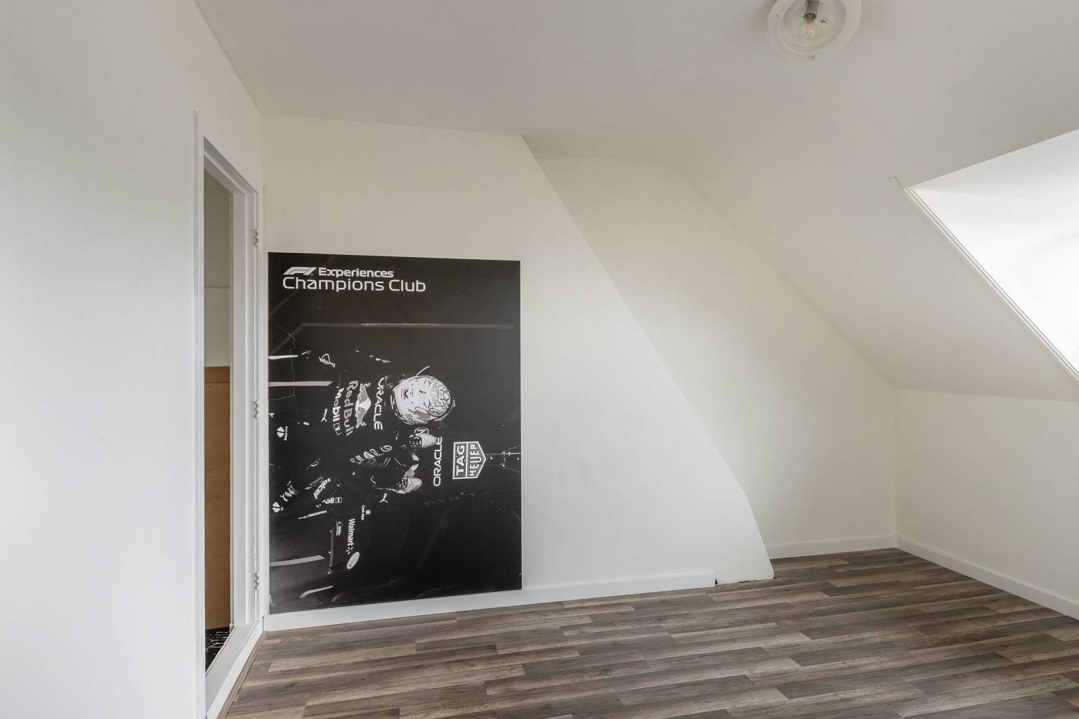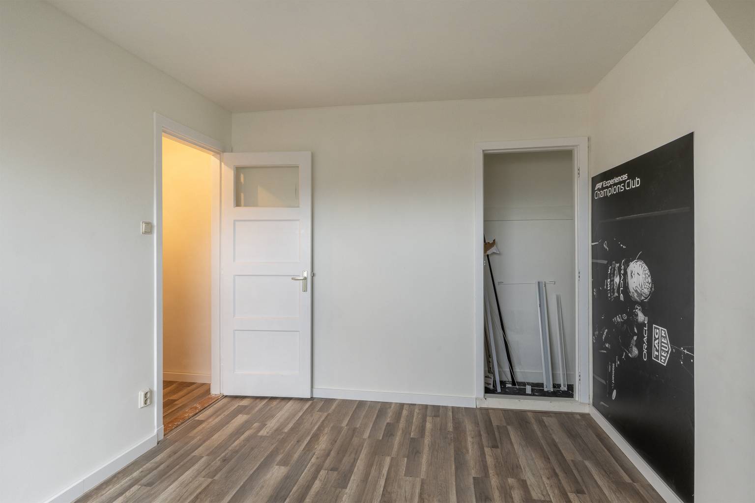 De slaapkamer beschikt over een vaste kast en deelt de dakkapel met de berging. Alle wanden zijn gesausd en op de vloer ligt laminaat.