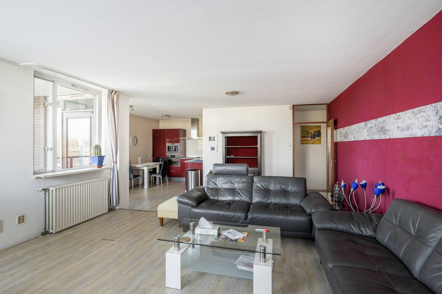 Wonen met de levendigheid van het centrum aan je voeten én een weids uitzicht over de haven, dat is precies wat dit fijne 3-kamerappartement op de derde woonlaag zo bijzonder maakt. Hier geniet je dagelijks van het gezellige stadsleven van Vlaardingen, met winkels, horeca, de markt, het openbaar vervoer en alle voorzieningen letterlijk om de hoek. Tegelijkertijd kijk je vanuit je woonkamer en vanaf het balkon uit over het water en de boten die voorbijvaren. Een uitzicht dat nooit verveelt. Na het parkeren van je auto in de garage waar een eigen parkeerplek is kom je via de afgesloten entree met bellentableau en brievenbussen bij de lift of trap om naar de verdieping te gaan. Achter de voordeur kom je binnen in een nette entreehal die toegang geeft tot vrijwel alle vertrekken. De wanden zijn gesausd en de vloeren voorzien van laminaat, wat zorgt voor een verzorgde en lichte basis. De inpandige berging met wasmachineaansluiting is praktisch weggewerkt en ook het gedeeltelijk betegelde toilet is vanuit de hal bereikbaar.