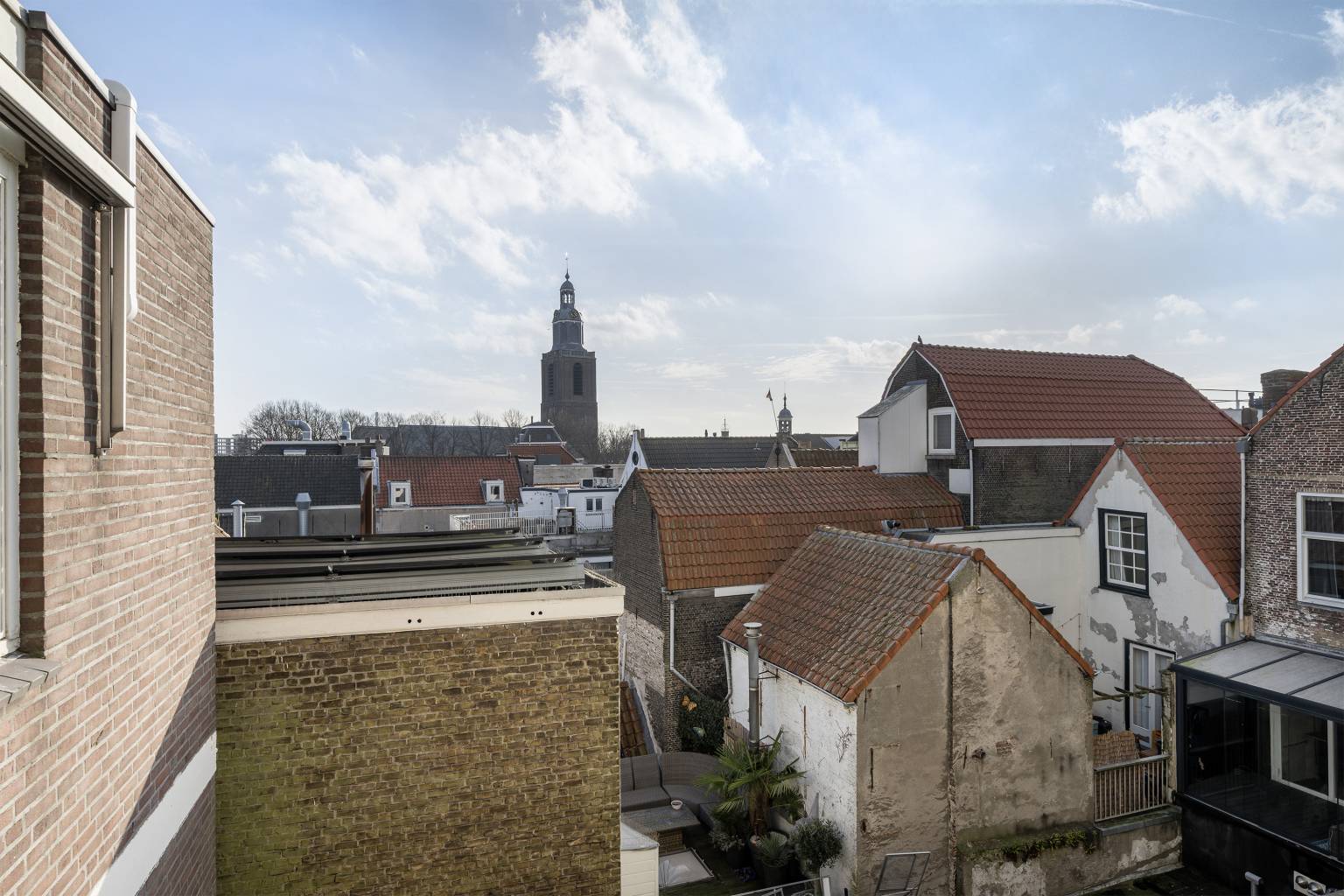- Overdekt balkon met uitzicht over de haven